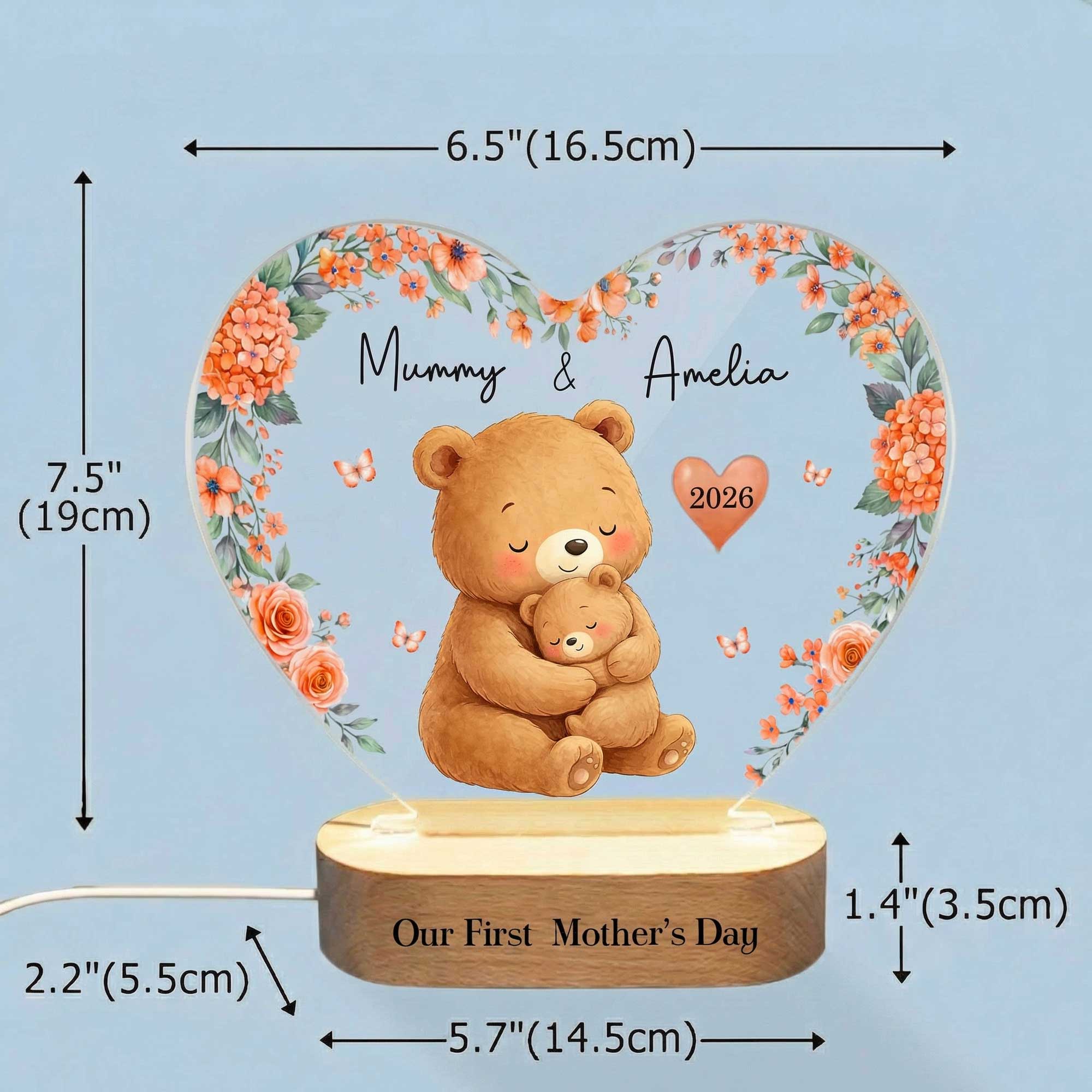Custom Names & Year - Personalize the lamp with the mother’s name, the baby’s name, a special year and custom text to celebrate a first Mother’s Day or the arrival of a newborn. The custom details turn this LED night light into a meaningful keepsake that honors the beginning of motherhood.